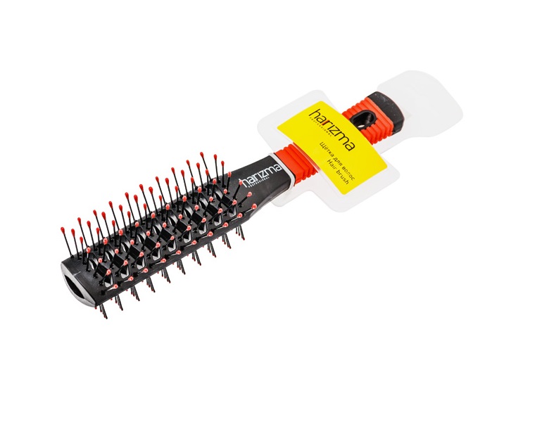 Harizma - Профессиональная массажная щётка для волос 9-рядов. Пластиковое основание и штифты из термостойкого нейлона с шариками. Предназначена для сушки феном и укладки...
