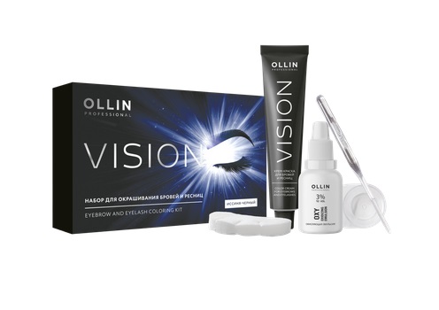 Ollin Vision Color Cream For Eyebrows and Eyelashes - Набор для окрашивания бровей и ресниц(Иссиня-чёрный).